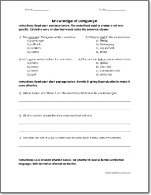 > Knowledge of Language Worksheet