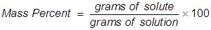 Mass percent is used as a way of expressing a concentration or a way of describing a component in a mixture. For a solution, the mass percent is expressed as the grams of solute divided by the grams of solution, then multiplied by 100 to get a percentage.