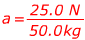 2) A man pushes a 50.0 kg block of ice across a frozen pond. He applies a force of 25.0 N, pushing the block away from him. What is the acceleration of the block?