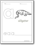 Trace the letter 'a' and color the alligator