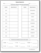 Numbers to Roman Numerals Conversion Worksheet 1 to 1000